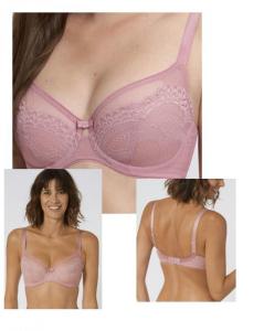 Sutien din dantela si broderie, cu armatura, cusatura verticala pe mijlocul cupei care ajuta la sustinere si confort. Bretelele se latesc o data cu cresterea circumferintei ajutand si ele la o sustinere mai buna a greutatii din umar.