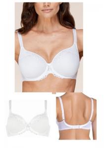 Sutien cu armatura si cupe din burete subtire, croiala pe cupa intreaga. In partea de sus a cupei si in punte are aplicata o broderie ce completeaza aspectul feminin si delicat al acestui model. Buretele subtire este creat special pentru a lasa pielea sa respire si a asigura in acelasi timp o sustinere foarte buna pana la cupe si circumferinte mari.
