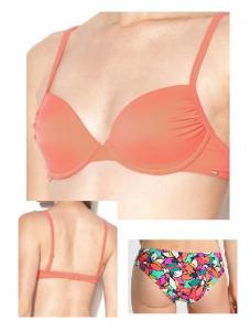 Costum de baie din 2 piese: sutien cu armatura si cupe captusite cu un burete usor, bretele reglabile si inchidere clasica la spate. Slip cu talie semijoasa, croiala clasica la spate, nu foarte lat pe solduri.