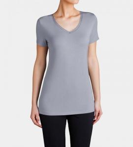 Maieu Triumph, intr-o culoare neutra, avand maneci scurte si croiala in V la gat, accesorizata cu dantela fina.