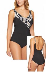 Costum de baie intreg, material cu proprietatea de uscare rapida, bretele reglabile, sutien cu armatura (sarma) pentru a asigura sustinere pana la cupe si circumferinte mari.
