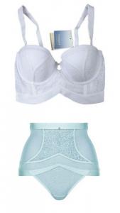 Set din gama de lux a Triumph (Essence) dormat din 2 piese. Sutienul este cu armatura, push-up si cu bretele detasabile. Chilotul este string (decoltat la spate) si cu talie inalta pentru a putea modela (strange) abdomenul. Perfect pentru mirese si nu numai.